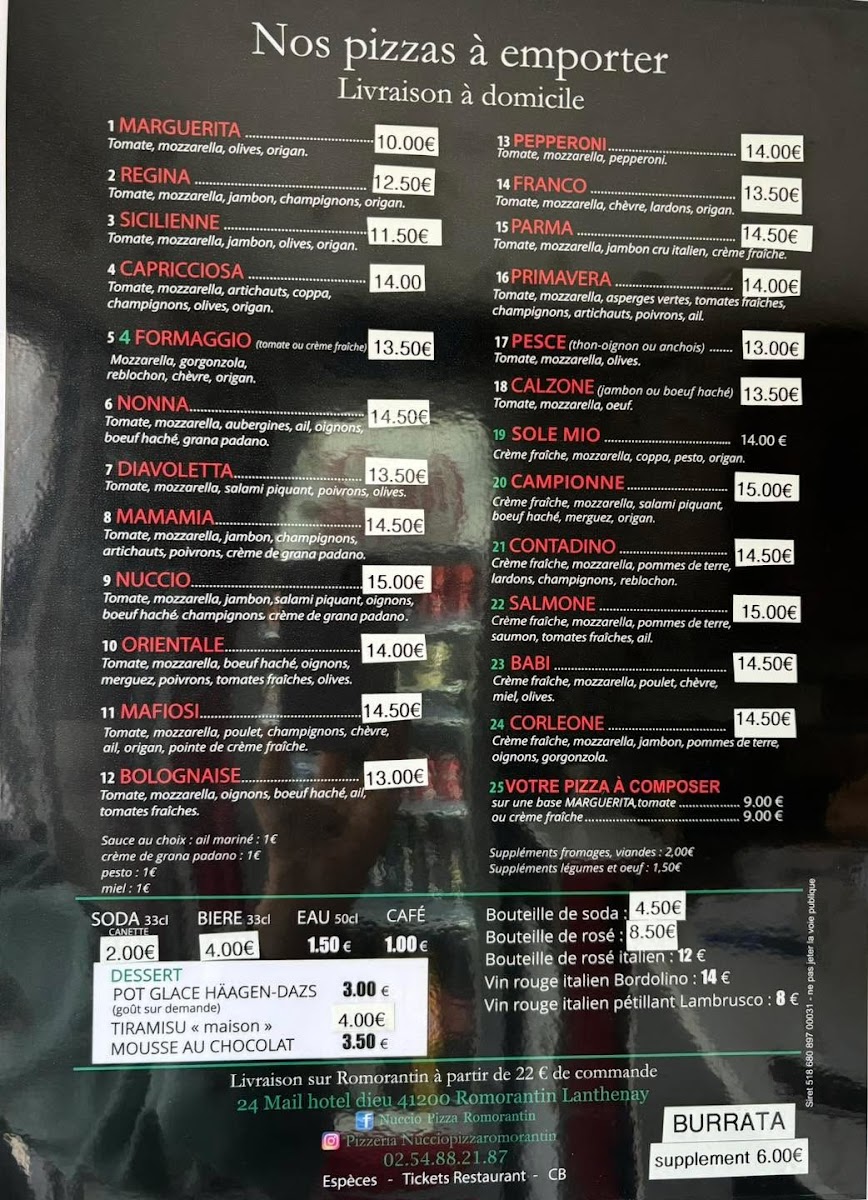 Introducing Nuccio Pizza, a culinary gem nestled in the heart of Romorantin-Lanthenay, France. Located at 24 Mail de l'Hotel Dieu, this pizzeria is renowned for its exceptional wood-fired pizzas, made from high-quality ingredients and a passion for authentic Italian flavors.